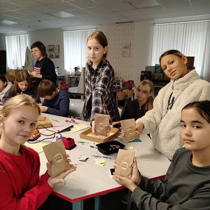 В преддверии Дня отца советник директора по воспитанию Александра Васильевна Николаева вместе с учителем труда (технологии) Ольгой Евгеньевной Титовой  провели для учащихся 5А класса увлекательный мастер-класс по изготовлению открыток.